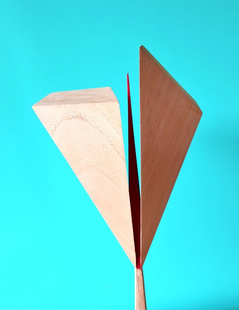 Esta pequeña escultura pertenece a la serie AMONGSTARS y tiene formas prismáticas con líneas vibrantes que atraviesan el espacio, ese espacio cósmico del que quiere formar parte, representa el equilibrio e invoca al silencio y la reflexión sobre el cosmos, ese universo que despreciamos estropeandolo con nuestro mal uso del planeta que habitamos. Invoca a ese silencio sideral que tanto necesitamos para anular el enorme ruido que provocamos con nuestras guerras, nuestras bombas y también con nuestra pequeña violencia personal, convoca por tanto a un pensamiento de renacimiento y esperanza de un planeta mas justo y solidario entre humanos.